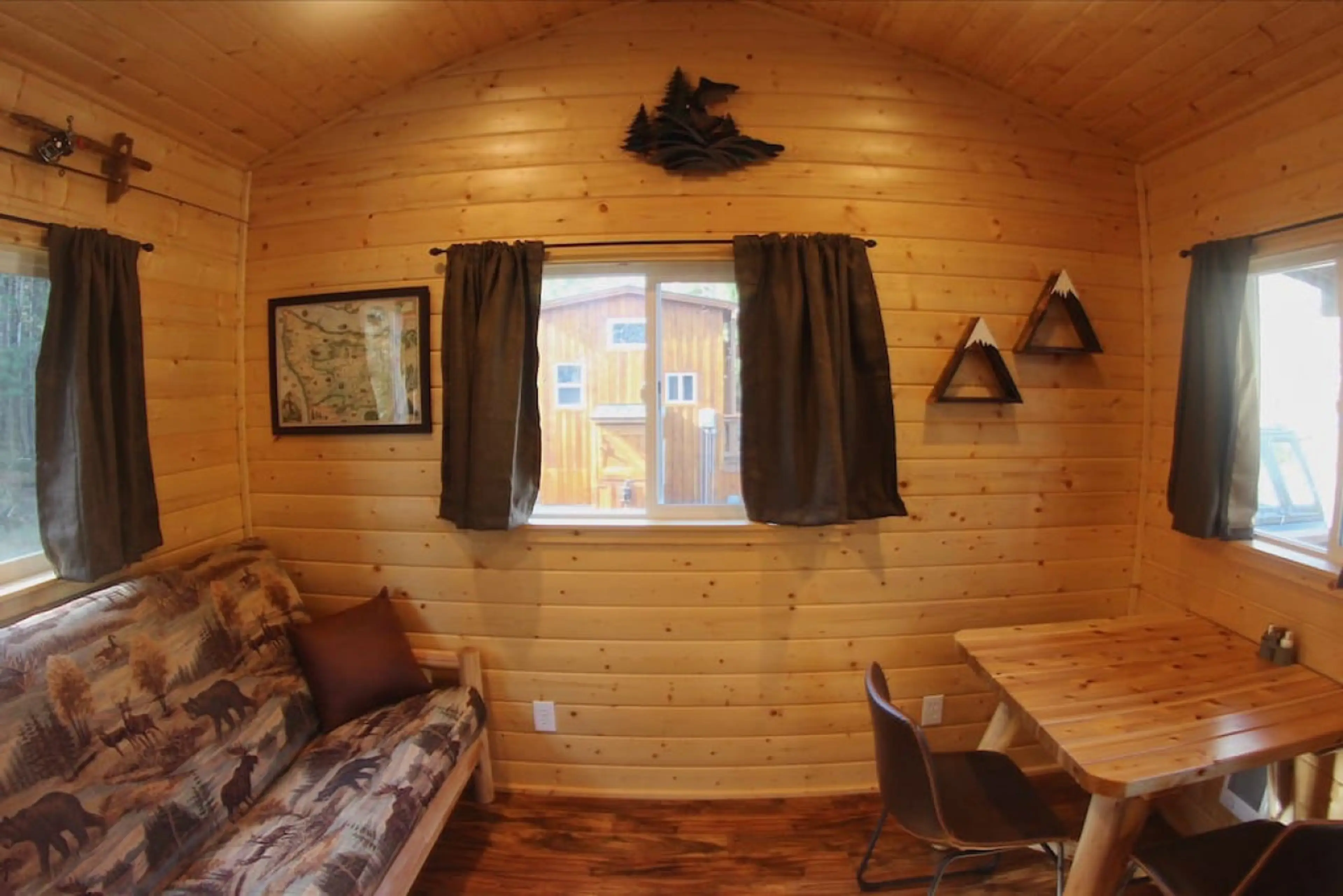 It felt like a TINY HOME...but cabin. 2 twin beds up top and the futon sleeps 2. It was very nice. Peaceful too!!!